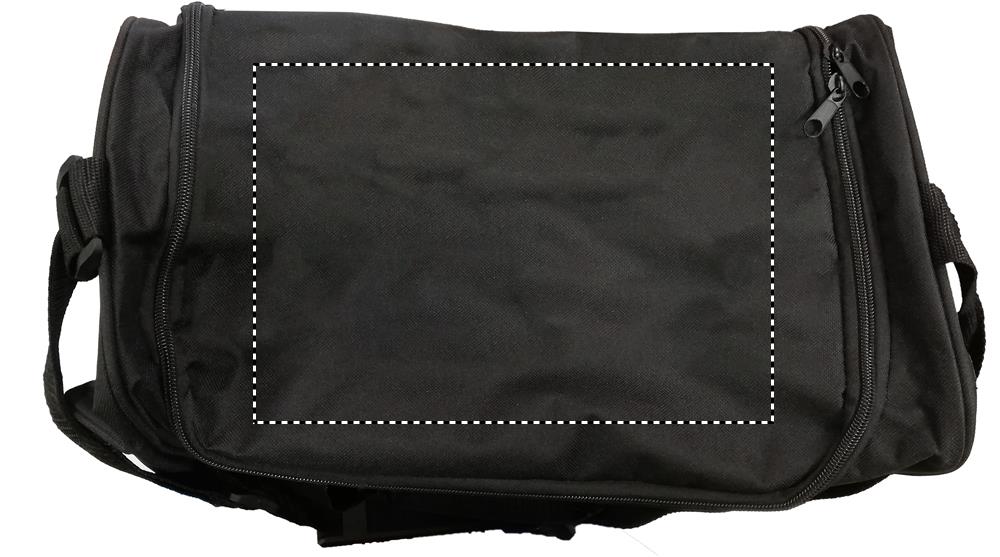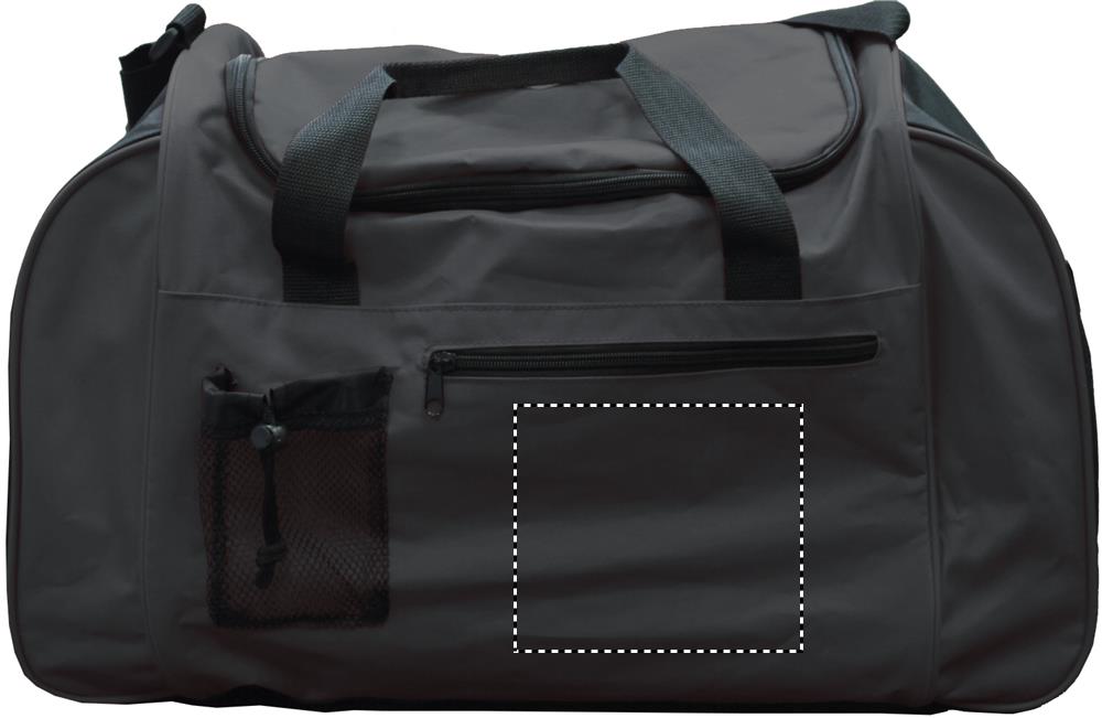 Sporta vai ceļojumu soma no 600D poliestera ar priekšējo kabatu un regulējamu un noņemamu plecu siksnu.