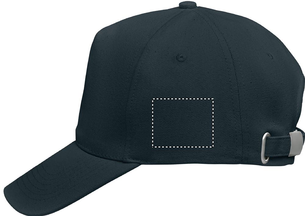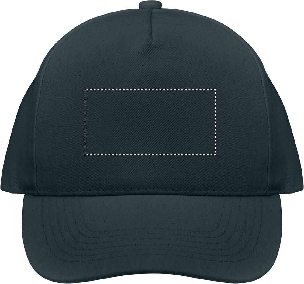 5 paneļu beisbola cepure no 250 gr/m² organiskās matētas kokvilnas ar metāla regulējamu siksnas aizdari.