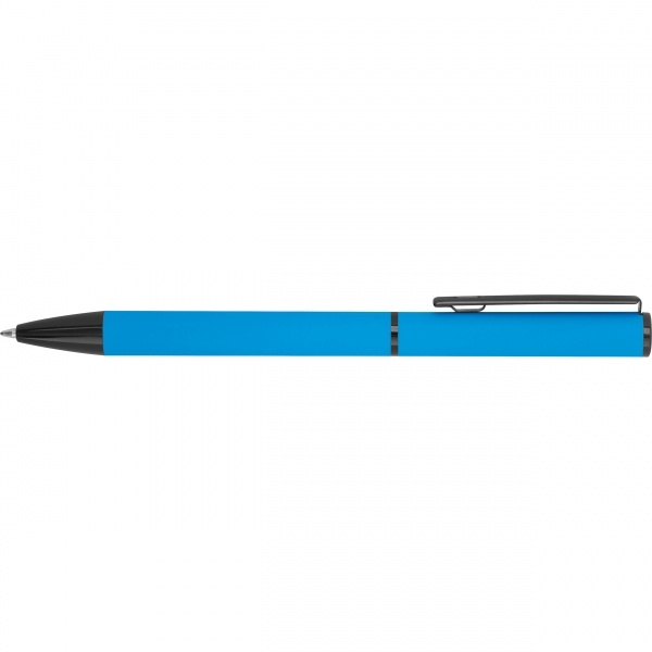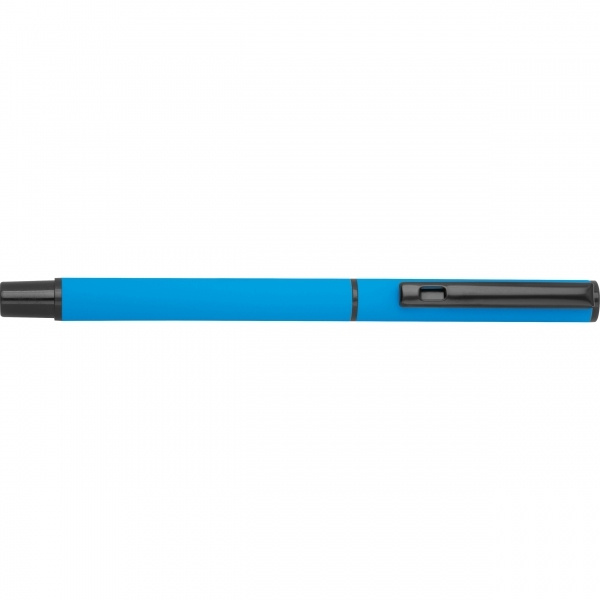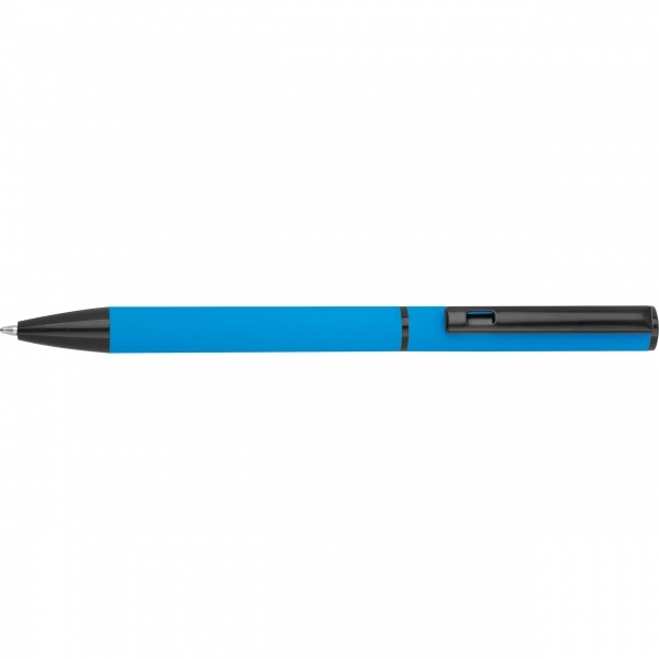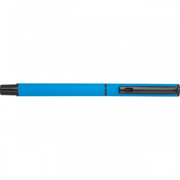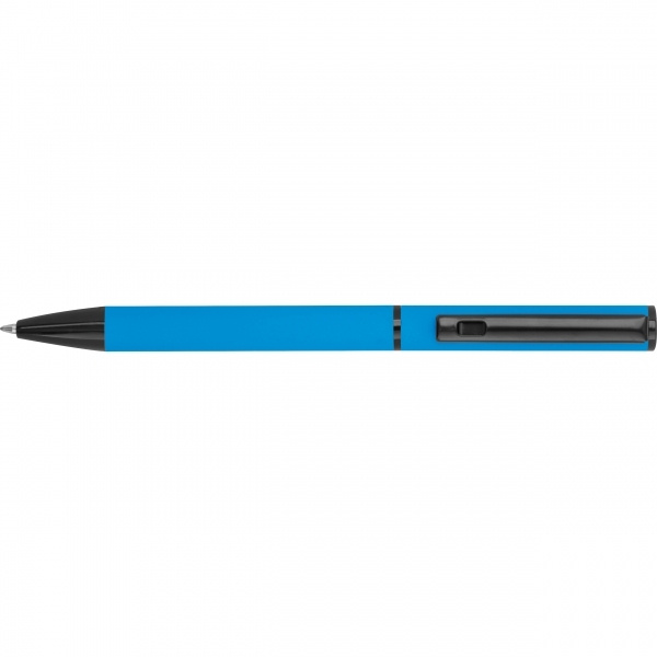 Rakstāmpiederumu komplekts, kas sastāv no melnas tintes lodīšu pildspalvas un zilas tintes griežamas lodīšu pildspalvas (ar lielas ietilpības plastmasas uzgali), iepakots kastītē. Jūsu logotips ir uzdrukāts uz abām pildspalvām, izmantojot lāzergravējumu, vienādā izmērā.