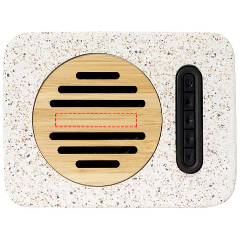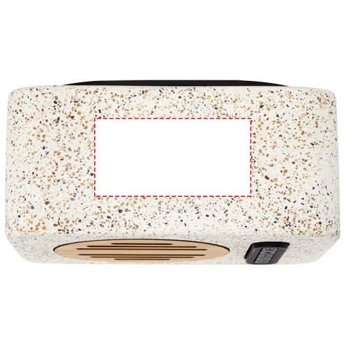 Bluetooth® skaļrunis izgatavots no dabīgā teraco un bambusa kombinācijas. Skaļruņa jauda ir 5 W, un tajā ir 500 mAh litija polimēru akumulators. Bluetooth® 5.0 darbības diapazons līdz 10 metriem. Šis skaļrunis nodrošina līdz 2 stundām atskaņošanas laiku ar maksimālo skaļumu, un tas aizņem aptuveni 2 stundas, lai uzlādētu no 0% līdz 100%. Tiek piegādāts dāvanu kastītē ar lietošanas instrukciju (abas izgatavotas no ilgtspējīga materiāla).