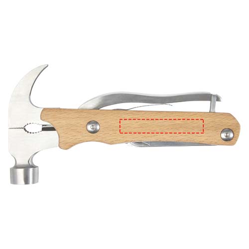 Прочный, долговечный и компактный многофункциональный инструмент из качественной нержавеющей стали с ручками из буковой древесины. Обязательный аксессуар для любого скаута, мастера и других любителей выживания или активного отдыха. Используемая буковая древесина поступает от надежных поставщиков, соблюдающих все экологические и социальные нормы. Размер этого многофункционального инструмента в открытом состоянии составляет 24 x 13 x 2 см, а в закрытом — 17,5 x 9 x 2 см. Имеет 10 функций: зажимные клещи, острогубцы, стандартные плоскогубцы, резак для проволоки, молоток, напильник, плоская отвертка, крестообразная отвертка, пила, нож и замок. Поставляется с инструкцией по эксплуатации в подарочной коробке из переработанного картона размером 20,5 x 10 x 3,5 см. В качестве экологически рационального варианта печати рекомендуется лазерная гравировка.