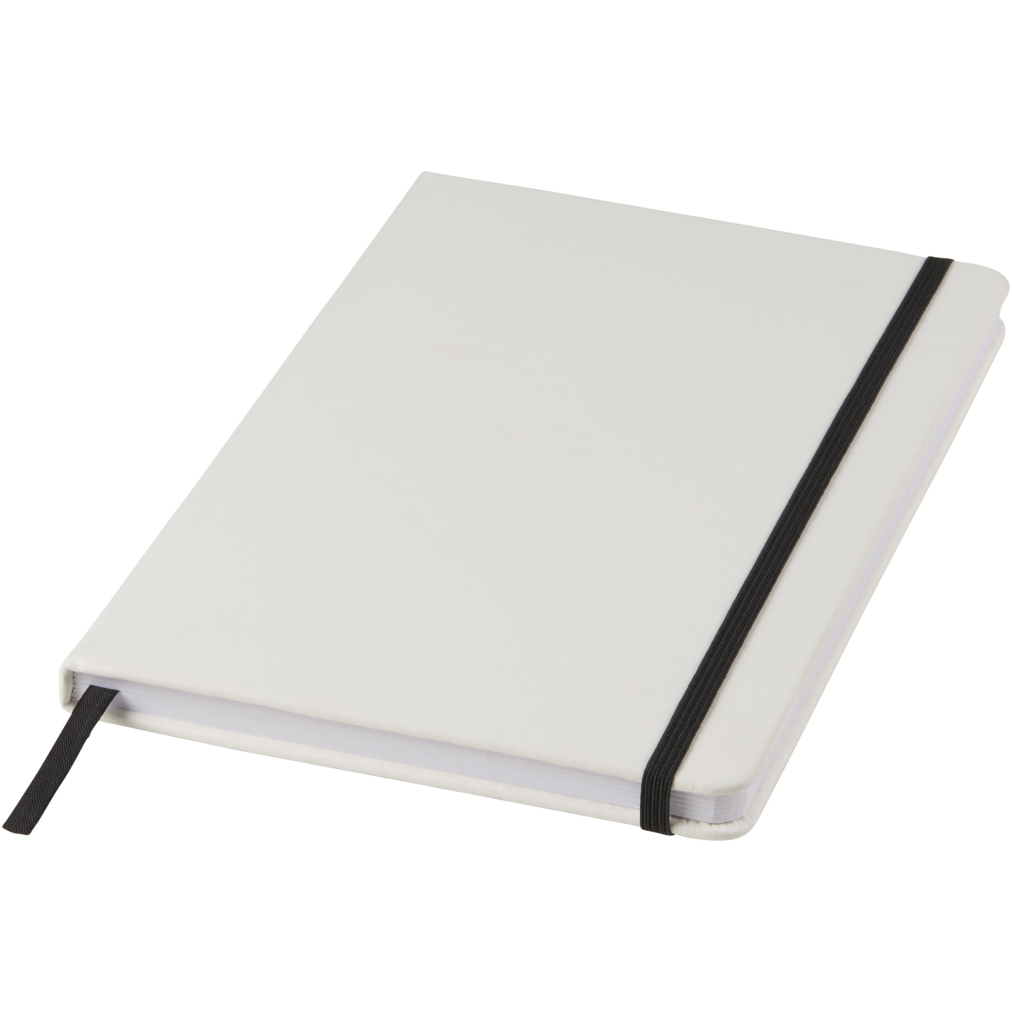 Блокнот формата A5 с цветной эластичной застежкой и ленточкой. Блокнот содержит 80 листов линованной бумаги (60 г/м²). На обложке возможна цифровая печать.