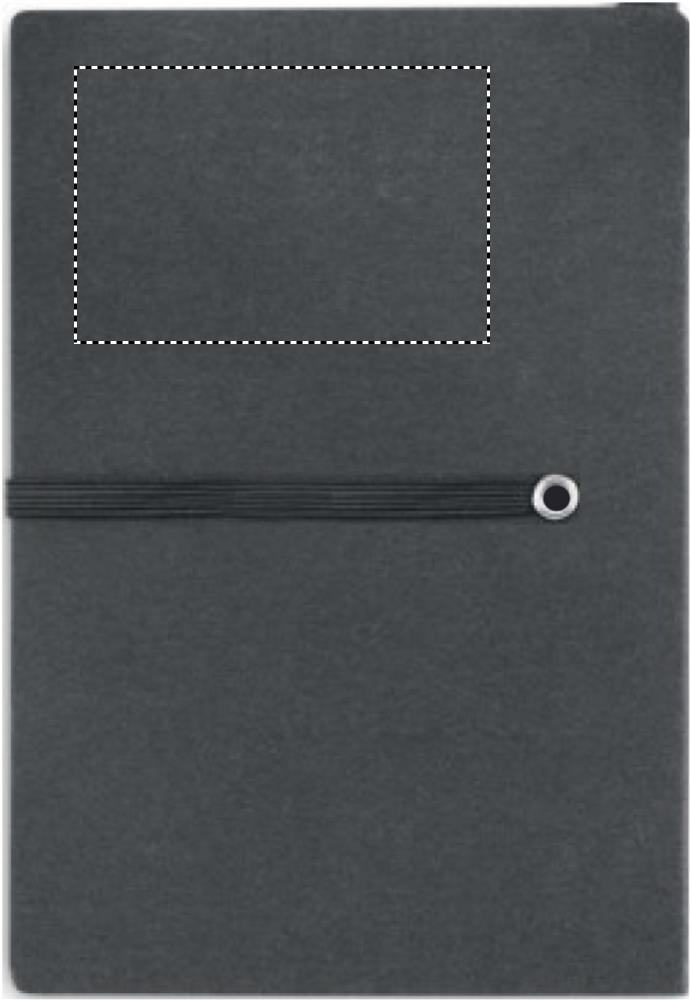 Блокнот на 80 линованных страниц с ручкой и стикерами. Закрывается резинкой. Изготовлен из биопереработанного картона. В ручке- черные чернила.