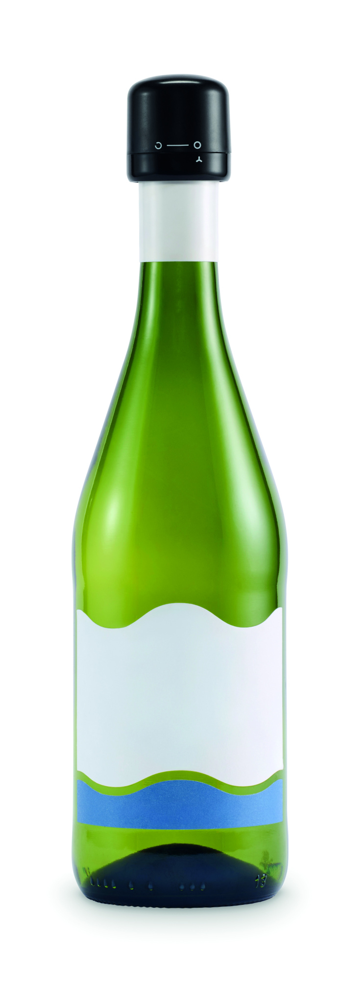 Bottle stopper made of recycled ABS for sparkling wine bottles. Features a turning lock mechanism and leak-free design.