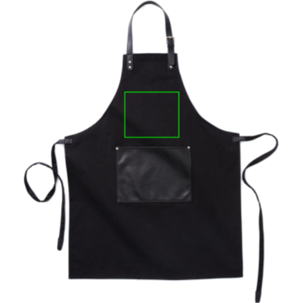 Стильный и классический фартук из плотного хлопкового полотна с неброскими деталями из ПУ. Регулируемая застежка на пряжке сверху и большой карман спереди. Фартук с долгим сроком службы, который со временем становится только красивее.