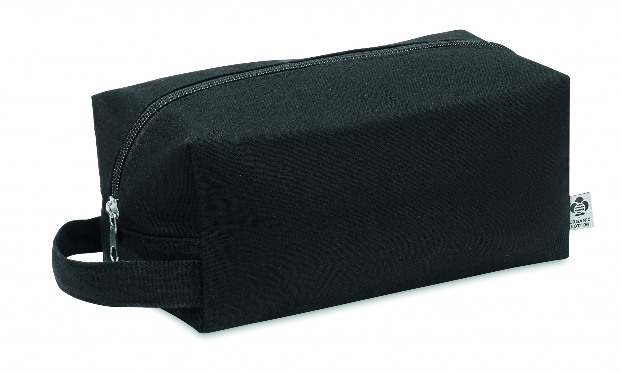 Косметичка на молнии из органического хлопка плотностью 220 гр/м². Боковая ручка и дно из полиуретана. Подкладка из органического хлопка 140 гр/м².