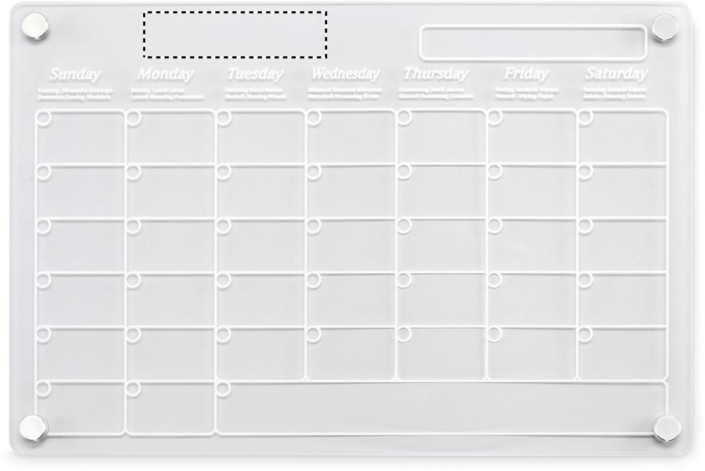 Magnetic acrylic monthly planner in A4 size with 3 erasable magnetic markers (black, red and white). Includes screws for mounting.