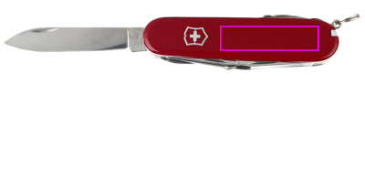 Характеристики: 1. большое лезвие 2. маленькое лезвие 3. штопор 4. консервный нож с: 5. - маленькой отверткой 6. открывалка для бутылок с: 7. - большой отверткой 8. - инструментом для зачистки проводов, швейной шило 9. дырокол 10. швейное ушко 11. кольцо для ключей 12. пинцет 13. зубочистка 14. ножницы 15. крючок 16. пила по дереву
