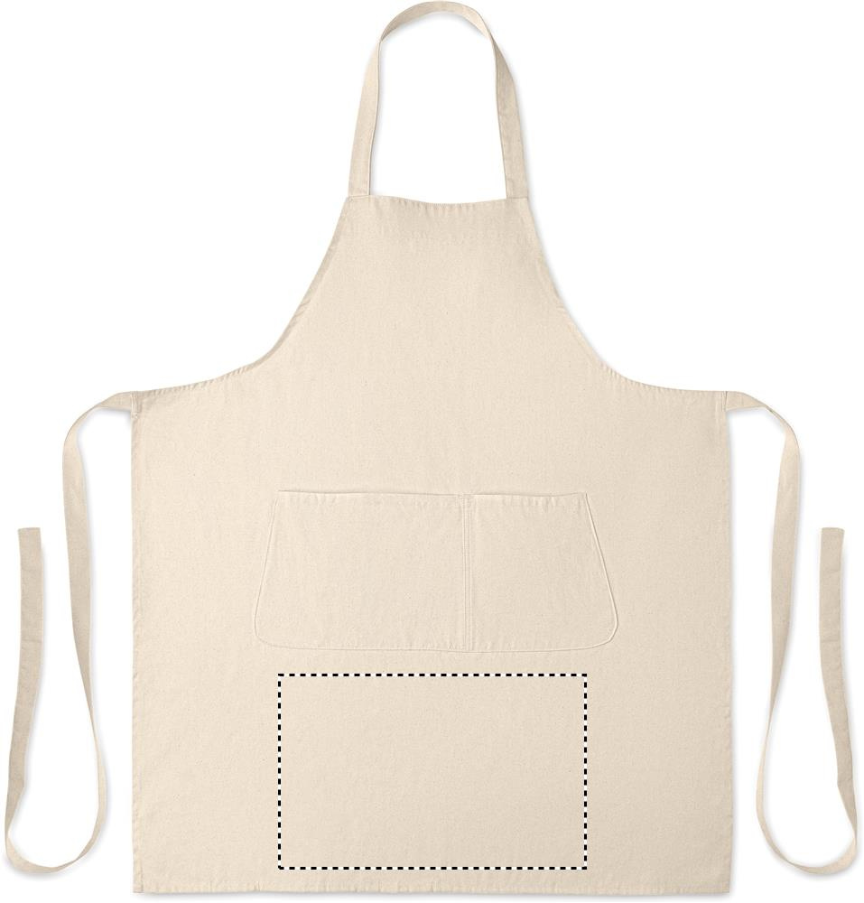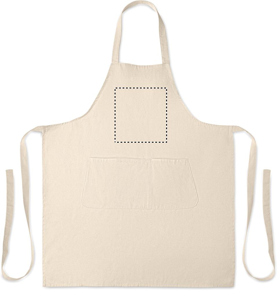 Adjustable bib apron with 1 large front pocket with 2 compartments in 240 gr/m² organic cotton. With adjustable button on the neck strap.