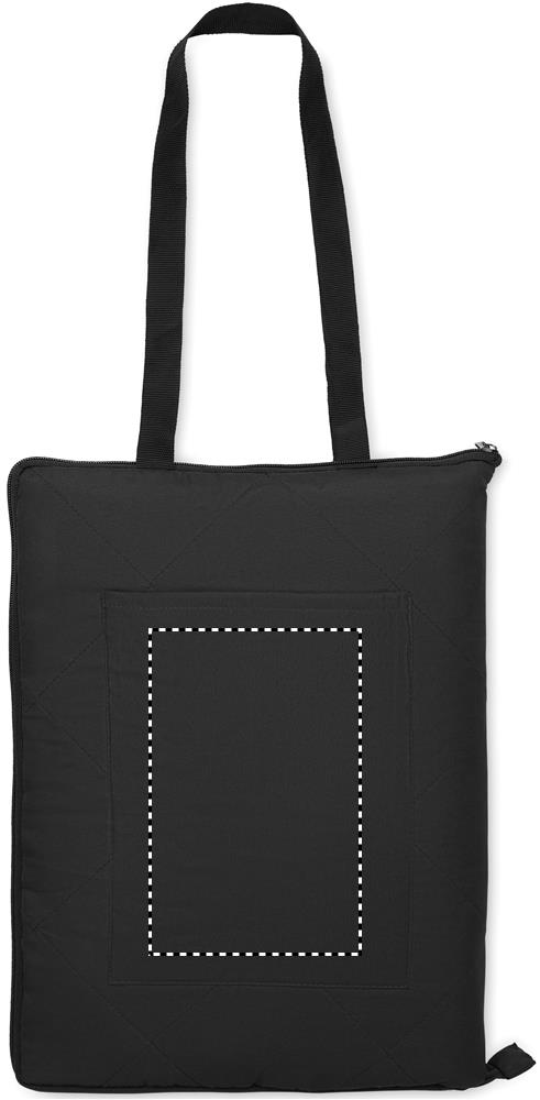 Складной стеганый плед для пикника с пластиковым покрытием PEVA с одной стороны. Складывается в удобную сумку на регулируемом плечевом ремне с большим боковым карманом.