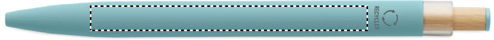 Recycled aluminium push ball pen with bamboo button with matching colour detail and matching metal clip. Blue ink.