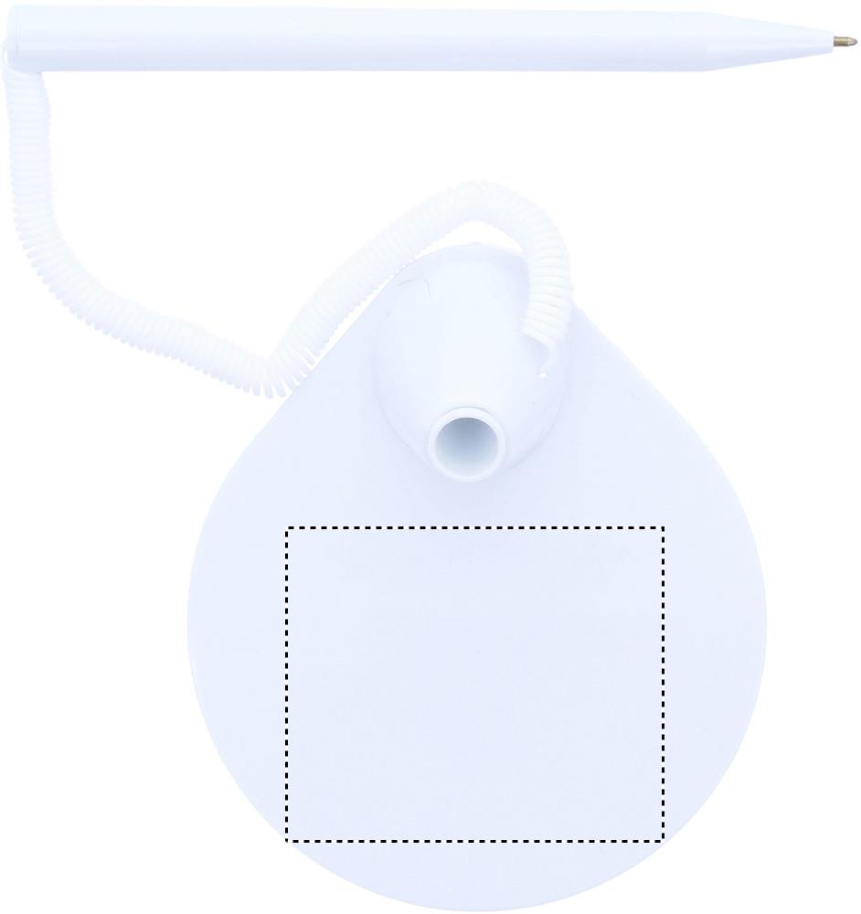Пластиковая ручка, соединенная с пластиковой подставкой эластичной пружинкой. Синие чернила.