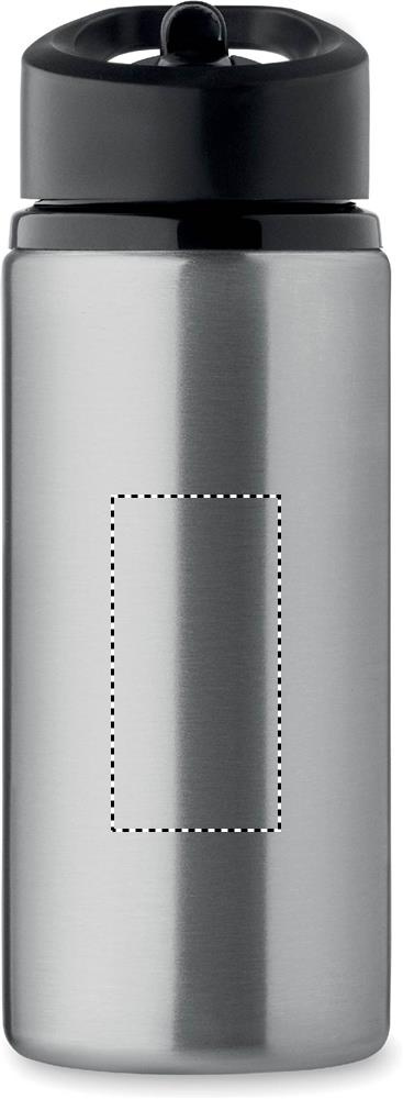 Recycled stainless steel (90% recycled stainless steel and 10% stainless steel) single wall bottle with foldable mouth piece, straw and lid with carrying handle. Capacity: 500 ml.