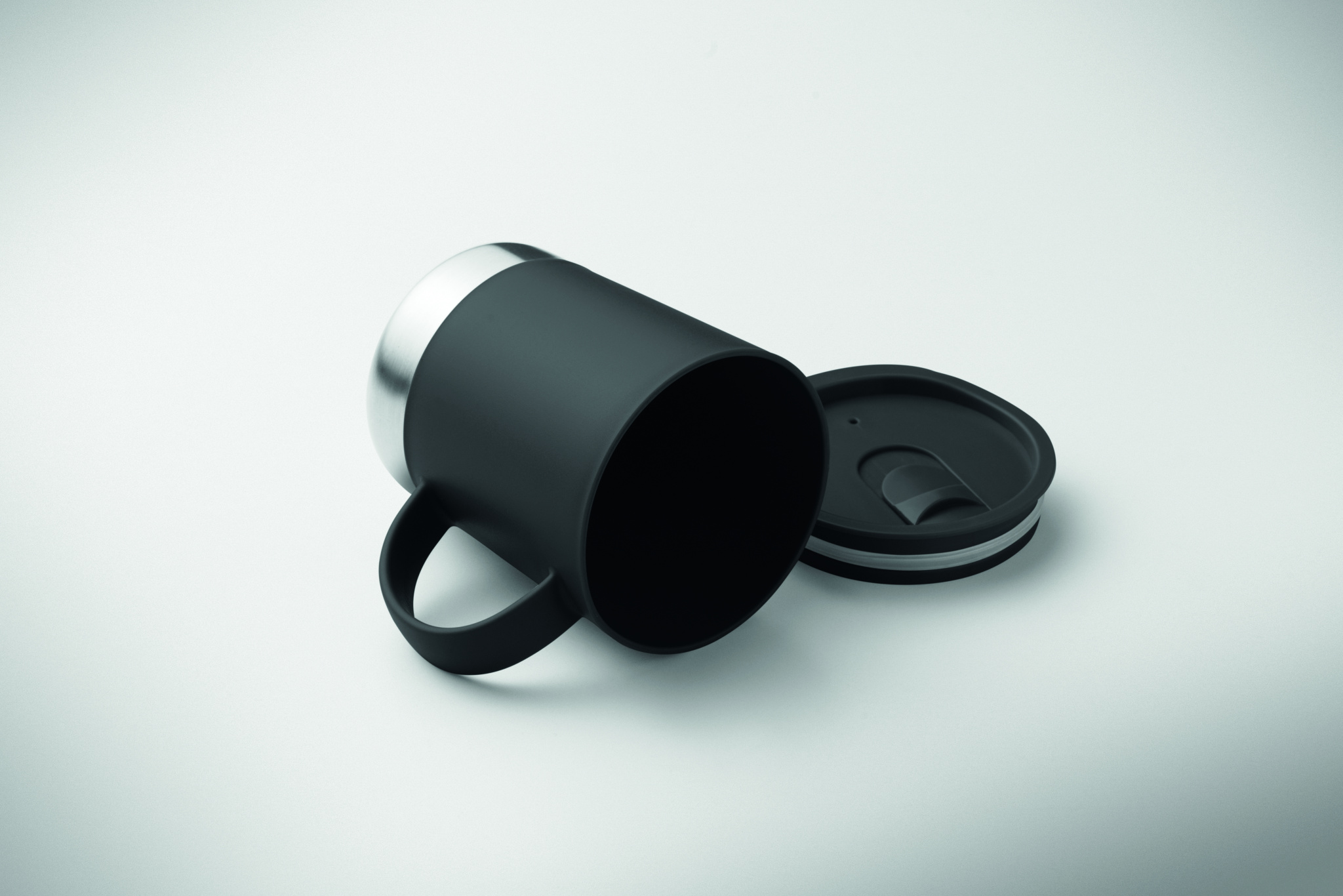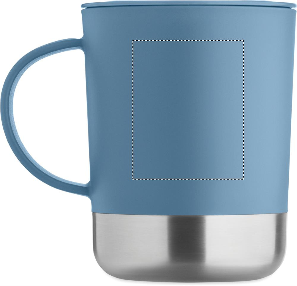 PP mug with recycled stainless steel base (90 % recycled stainless steel and 10% stainless steel) and PP sliding lid. Capacity: 300 ml.