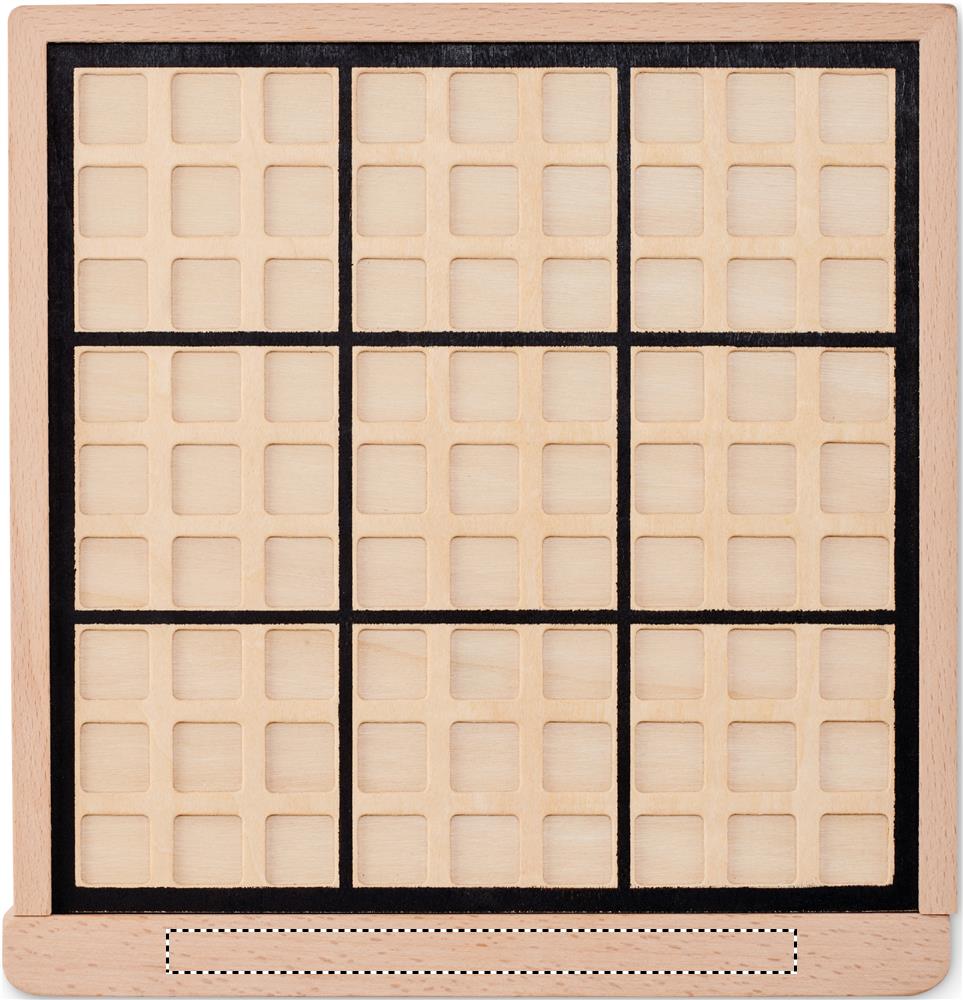 Деревянная доска для судоку. Включает 99 пронумерованных деревянных плиток, руководство по игре с инструкциями, головоломками и решениями.