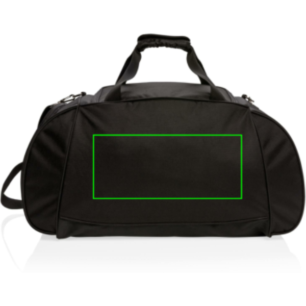 Эта дорожная сумка из полиэстера 600D с 1680D предлагает спортивный стиль для спортзала или обычных путешествий. Включает вместительное основное отделение с U-образной верхней застежкой-молнией, боковое отделение для обуви с вентиляционным отверстием и боковое отделение для бутылок. Передний карман на молнии для быстрого хранения смартфонов и других дорожных принадлежностей. Регулируемый плечевой ремень и двойные верхние ручки для удобства и универсальности переноски. Не содержит ПВХ.