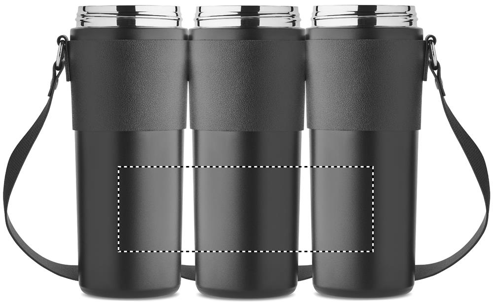 Термос с двойными стенками из нержавеющей стали, крышкой из полипропилена (крышка 2 в 1 с соломинкой) и полиуретановым ремешком для переноски. Герметичен. Емкость: 700 мл.