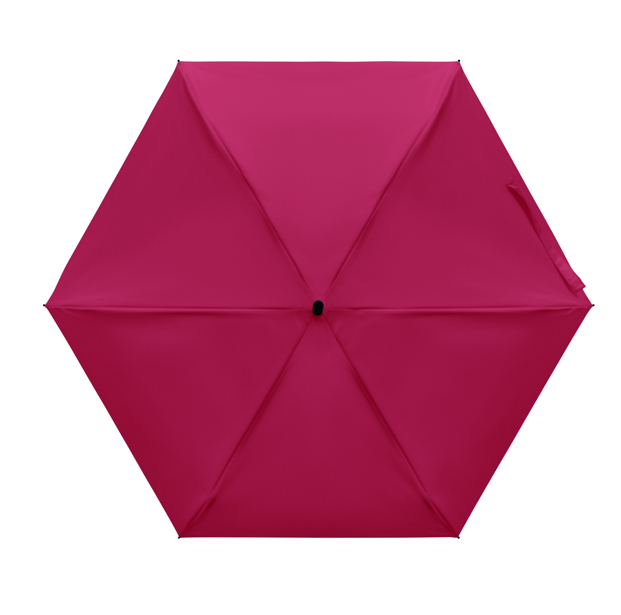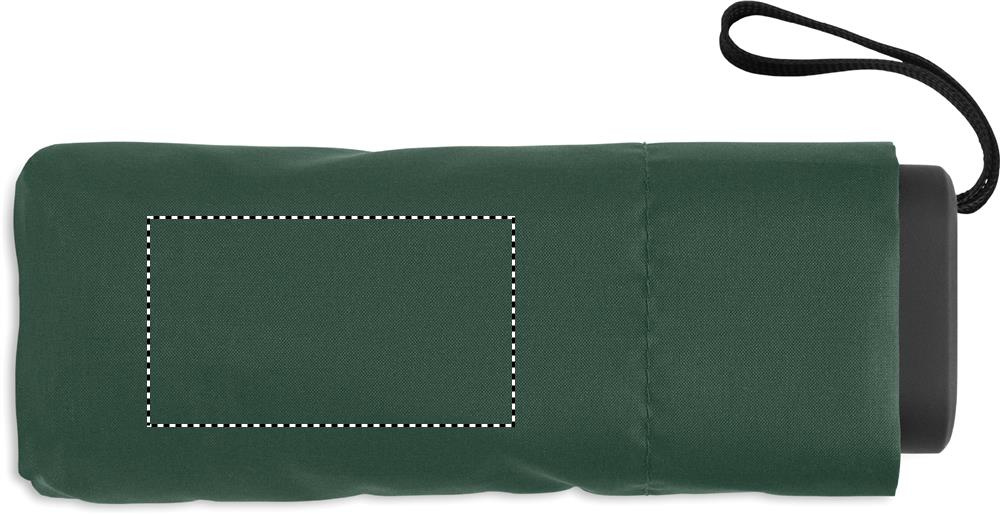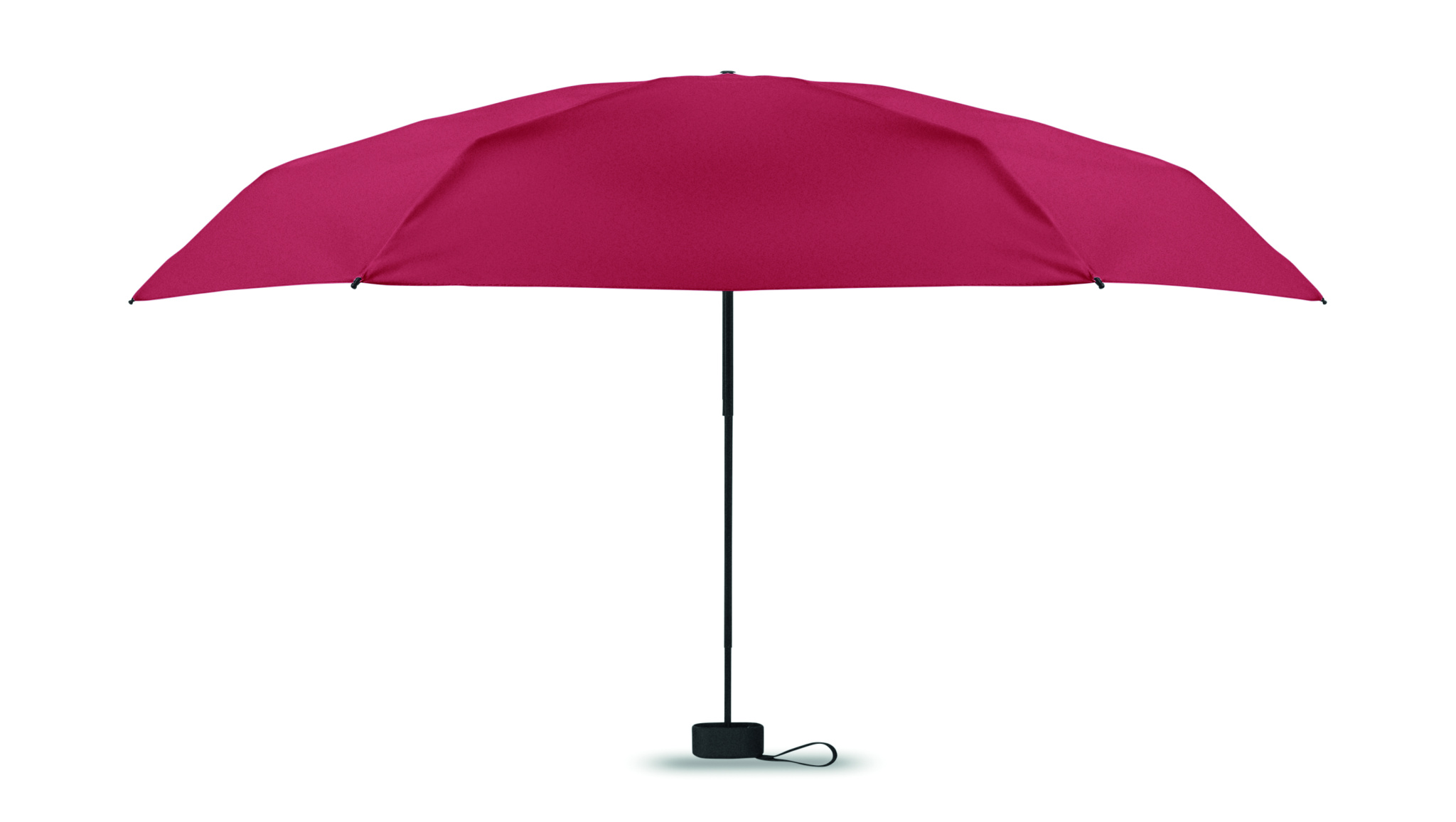 19-tums 5-faldigt manuellt paraply tillverkat av 190T pongee med påse. Det har en vindtät ram i metall och glasfiber, svart gummerat handtag med handledsrem och en kompakt hopfälld storlek på 17 cm.