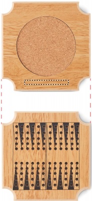 Set med 4st drickunderlägg av kork och MDF inklusive ett 4-spelsset: Tic-Tac-Toe, Backgammon, Schack och Kinesiskaschack.