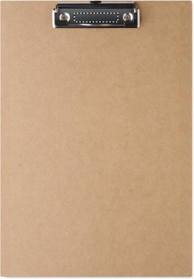 A4-hållare av kartong med pappersomslag och silverfärgad järnklämma. Lättviktsdesign på 125 g, perfekt för vardagligt bruk på kontoret eller i skolan.