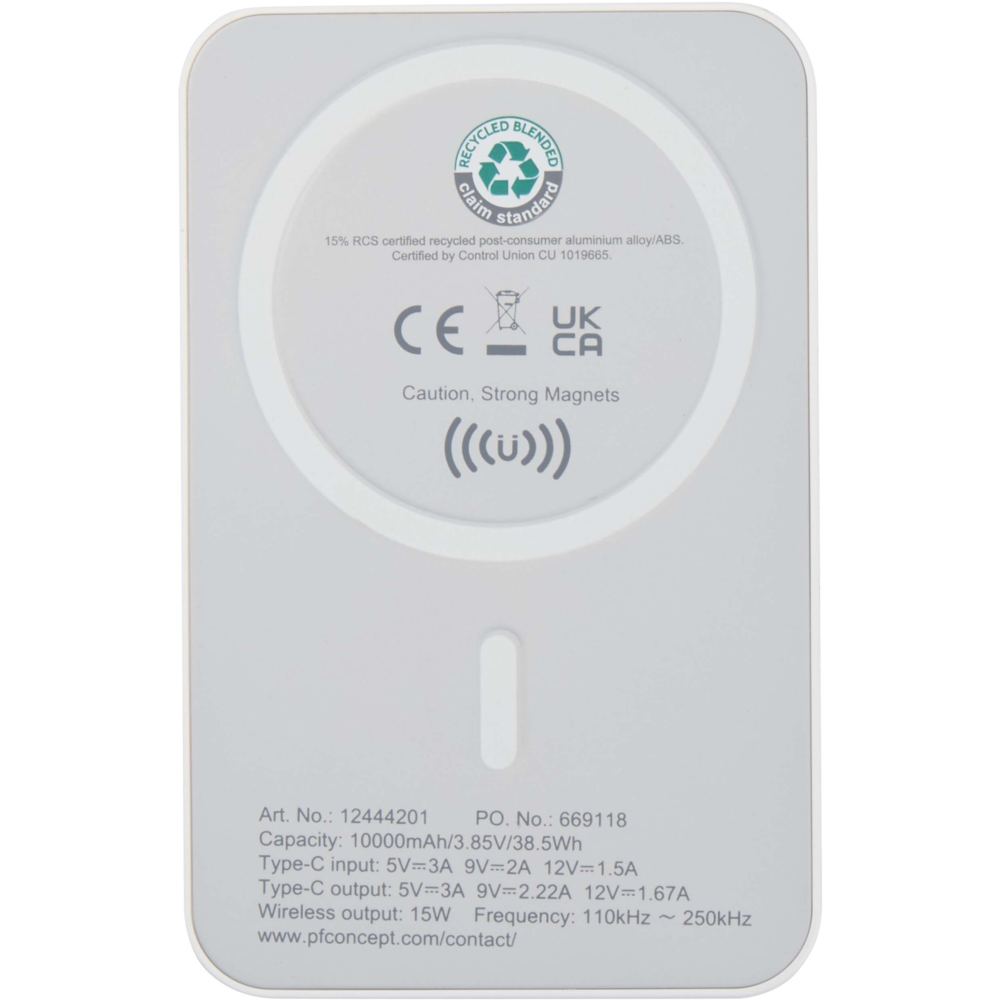 Acrab 10 000 mAh 15 W magnetisk trådlös powerbank med 20 W PD – tillverkad av återvunnen plast, Vit