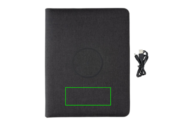 Logotrade presentreklam bild: Air A4 portfolio med trådlös laddning och powerbank