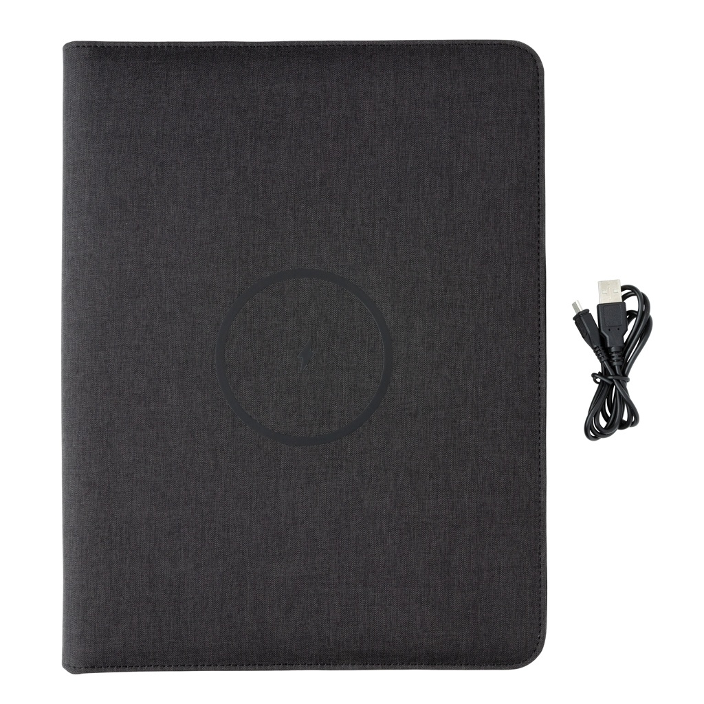 Logotrade profilprodukter bild: Air A4 portfolio med trådlös laddning och powerbank