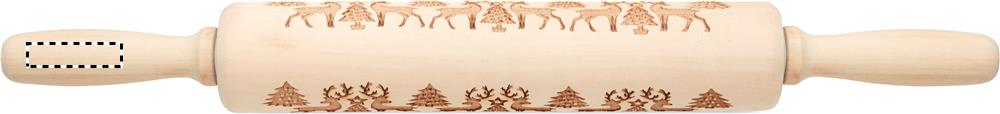 Bak kavel i trä med präglat julmönster.
