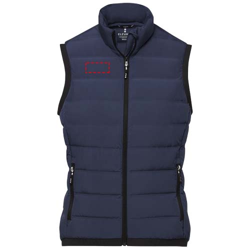 Caltha isolerad dun bodywarmer för damer - ett mångsidigt och miljövänligt ytterplagg. Tillverkad av 164 g/m² 750T vävt dubbelskiktat pongee-tyg i polyester. Det matta tyget i kombination med värmeförseglad quiltning ger kroppsvärmaren en modern look samtidigt som den totala isoleringsförmågan förbättras. Med RDS-certifierad återvunnen dunisolering av återvunnet dun och återvunna fjädrar får du värme utan att kompromissa med etiska standarder. Med invändig stormklaff, hakskydd och flatstickade elastiska ribbade muddar i ärmsluten ger denna bodywarmer maximalt skydd mot väder och vind. Frontfickorna med dragkedja ger extra bekvämlighet och funktionalitet. Omfamna både stil och etiska värderingar med Caltha bodywarmer perfekt för alla utomhusäventyr eller daglig användning. Denna bodywarmer är designad med en figurnära form för en feminin look.