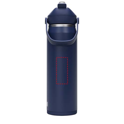 Vattenflaskan Camelbak® Thrive Flip VSS (vakuumisolerat rostfritt stål) är utformad för att stödja hydrering hela dagen. Den levereras med en integrerad stötfångare som skyddar mot bucklor och ger ett säkert grepp på nästan alla ytor. Den starka, fulla och hållbara pulverlackeringen gör att dryckerna smakar gott, medan vakuumisoleringen med dubbla väggar håller dem varma eller kalla i timmar. Andra funktioner är ett sugrör och en EasyFlow ventil, 100 % läckagesäkert lock, dammskydd och ett mjukt svängbart handtag för enkel bärkomfort. Designen passar i de flesta mugghållare, vilket gör den bekväm för resor eller dagsturer. Hela flaskan tål maskindisk för snabb och enkel rengöring. Volymkapacitet: 750 ml.