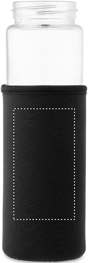 Glasflaska med lock i bambu, neopren fodral och funktionalitet för smartphone-stativ. Läcker inte. Kapacitet: 600 ml.