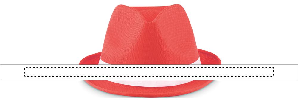 Färgad stråhatt i polyester med vitt band. Otryckt order levereras banden omonterade på hatten.
