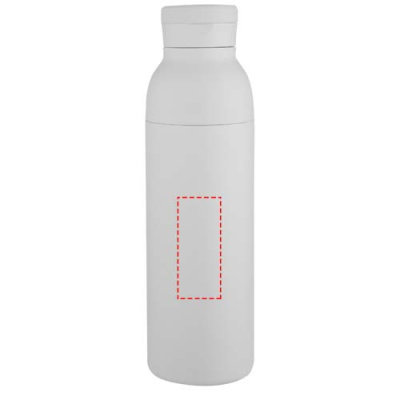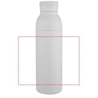 Dubbelväggig, vakuumisolerad, RCS-certifierad vattenflaska i rostfritt stål med ett diskret inbyggt silikonhandtag i locket. Den tvådelade konstruktionen gör rengöringen enkel, medan den slitstarka pulverlackeringen och kopparpläteringen garanterar lång livslängd. Levereras i en presentförpackning av återvunnen kartong. Volymkapacitet: 650 ml.