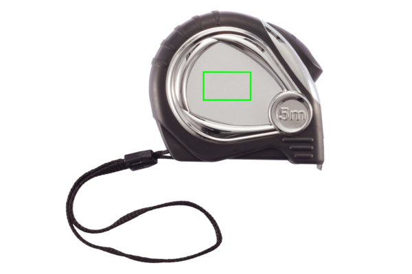5m / 19mm ABS måttband i krom. Mjukt gummigrepp och gult måttband. Inklusive bältesklämma och handledsrem.