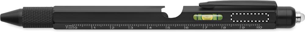 Penna med vridfunktion i rostfritt stål med linjal, vattenpass, bits för skruvmejslar med phillips- och flatheadskruvmejslar samt lysdiod. 3 AG-batterier ingår. Blått bläck.