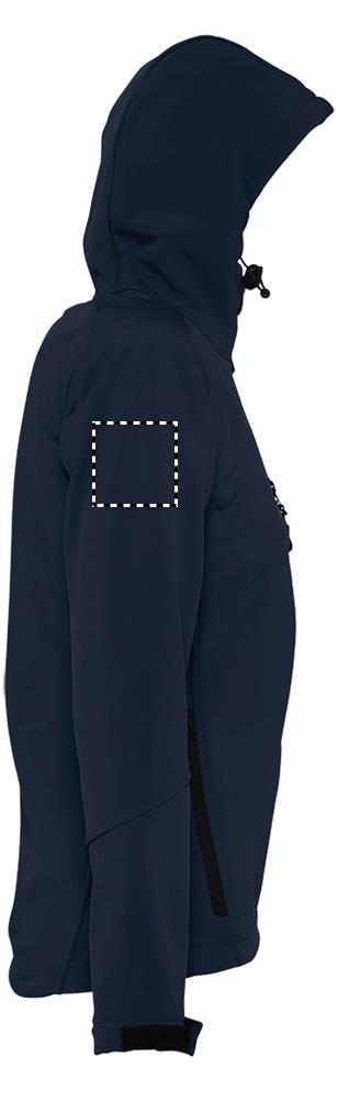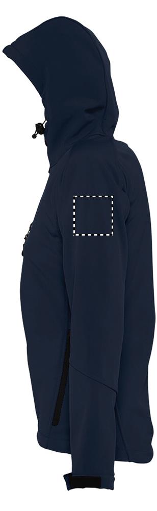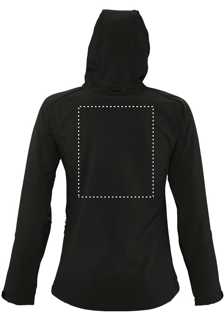 SOL'S REPLAY DAM, SOFTSHELL MED HUVA FÖR DAMER, 94 % polyester - 6 % elastan, Fodrad med fleece: 100 % polyester, 3 lager, 8000 mm vattentätt membran med andningsförmåga SOFTSHELL 340, 2 sidofickor med dragkedja och 1 bröstficka med dragkedja, Justerbar dragsko i midjan, Justerbara ärmslut med självhäftande knäppning, Huva med dragsko för matchande storlekar, se storlekstabellen i avsnittet om produktdokumentation.