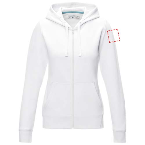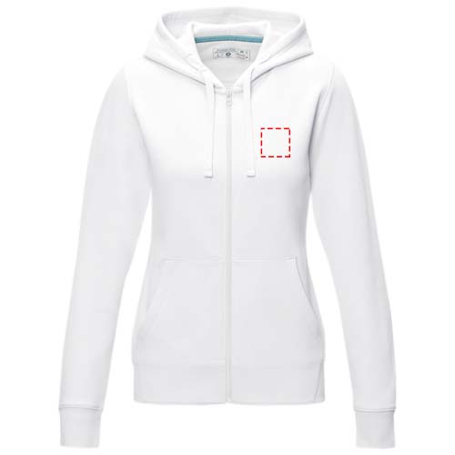 Ruby organic recycled hoodie med hel dragkedja för damer - denna hoodie visar upp en blandning av miljömedvetna egenskaper som omdefinierar modernt mode. Den mjuka borstade insidan ger en skön känsla. Tillverkad av en 280 g/m²-blandning av ekologisk bomull och återvunnen polyester. Huvtröjan har en figurnära passform för en feminin look.