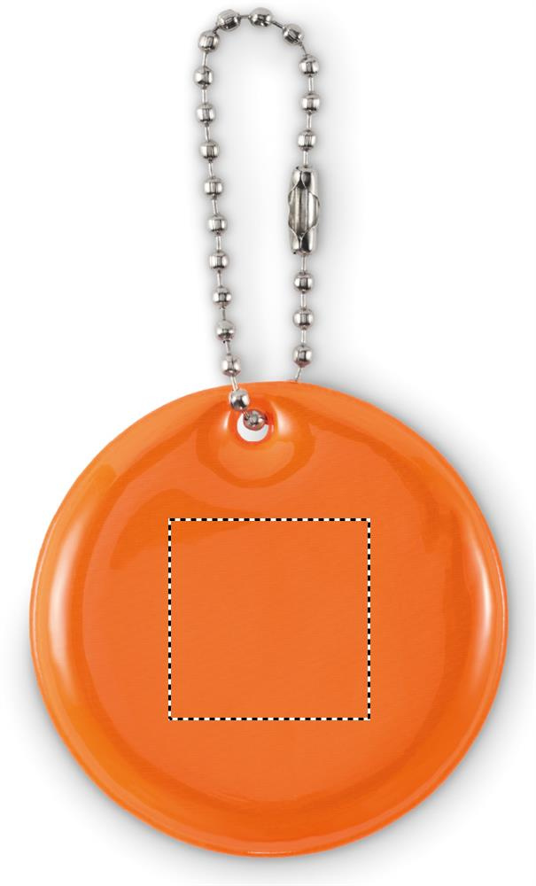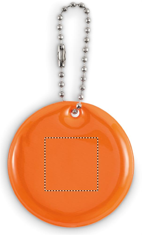 Rund reflekterande nyckelring i PVC. För reklamanvändning.