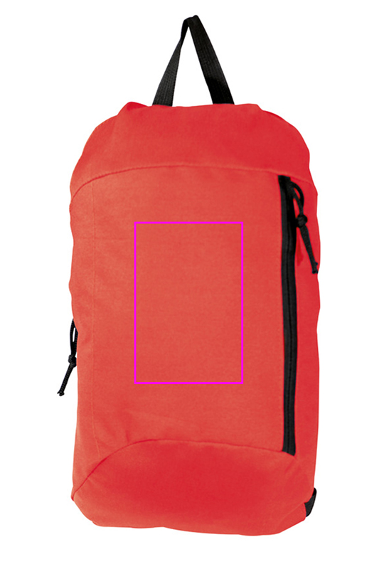 Ryggsäck av 600D polyester med stort innerfack, framficka, vadderade axelband och vadderad rygg för hög bärkomfort. Vi trycker din logotyp på vänster sida av dragkedjan.