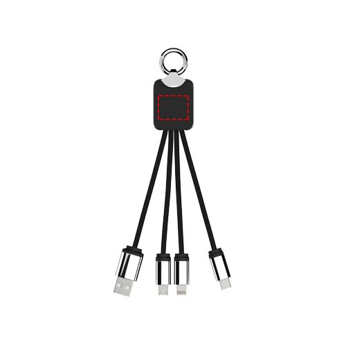 Laddningskabel i gummi med metallfinish och belyst logotyp. 3 st anslutningar (typ C, Android, iPhone). Upp till tre enheter kan laddas samtidigt. Längd på kablar (inkl. kontakter): 10 cm. RPET-plastkabel och förpackningen är tillverkad av återvunnet papper och återvunnen plast.
