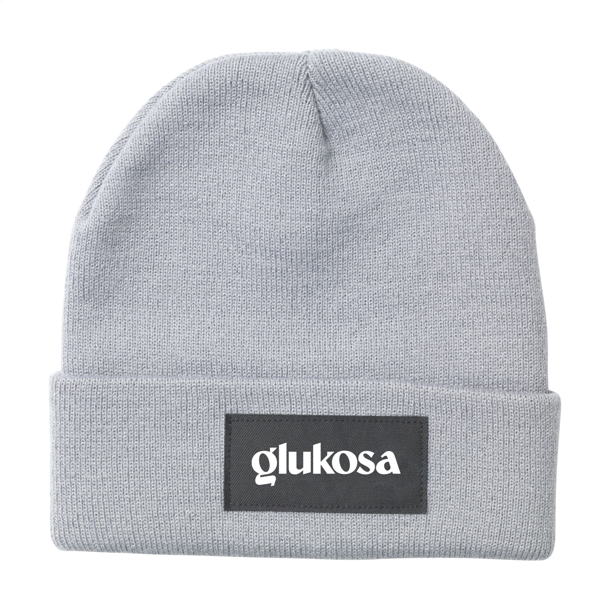 WoW! Stickad mössa med omvik. Tillverkad av 100 % RPET polyester. Ett populärt föremål som håller dig varm och skön med material av god kvalitet. One-size. Med svart etikett för dekoration. GRS-certifierad. Totalt återvunnet material: 100 %.