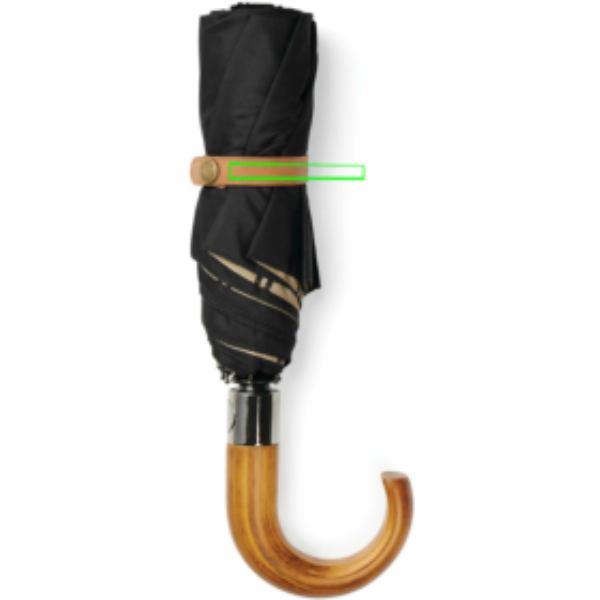 Håll dig torr med stil när du är på språng med vårt klassiska och diskreta paraply på 21 tum. Det dubbla lagret av 190T-tyg av återvunnen PET erbjuder bra skydd mot regn, medan det fina innerfodret adderar en touch av elegans till designen. Paraplyet har stänger och ram av glasfiber, vilket garanterar hög hållbarhet och lång livslängd. Paraplyhandtaget är tillverkat av kompositträ, vilket ger paraplyet ett sofistikerat utseende. Paraplyet har dessutom en automatisk öppningsfunktion för ökad komfort och ett manuellt stängningsfunktion. Förvaringspåsen i matchande tyg omsluter paraplyet med ett extra skyddande lager när det inte används. Innehåller spårningsteknik från AWARE™ som garanterar användning av äkta återvunnet material och som understryker vårt löfte att göra våra inköp från hållbara källor. Förpackningen består av FSC®-certifierat material. 2 % av intäkterna från varje såld Impact-produkt kommer att doneras till Water.org.